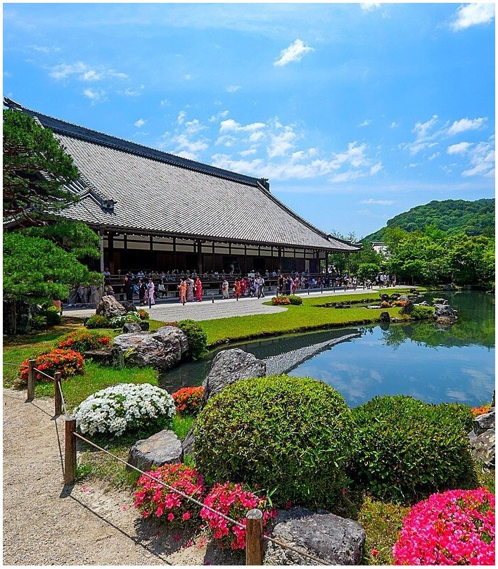 Екскурсія до підніжжя західних гір Кіото - району Арасіяма. Безліч маленьких, але глибоко шанованих японцями храмів, кожен зі своєю чудовою і незвичайною історією; озеро, якому тисячі років. Все тут так, як зображено на старовинних гравюрах. У центрі знаходиться Тогецукьо, який не знає старості, - сповнений витонченості міст "перетину місяця", що веде до таємничого бамбуковому гаю.