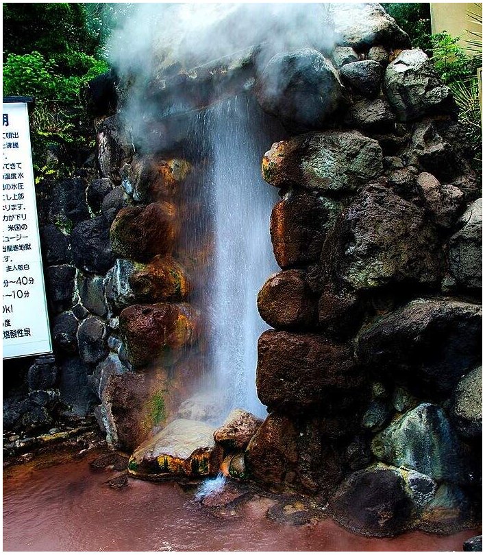 Вийшовши на вулиці Беппу, звідусіль ллються звуки шумливої води в водостоках. Всюди закипає і випаровується цілюща вода, хлюпає лікувальна грязь, б'ють фонтанами гейзери, а з тріщин в скелях вириваються гарячі клуби пара і сірки.