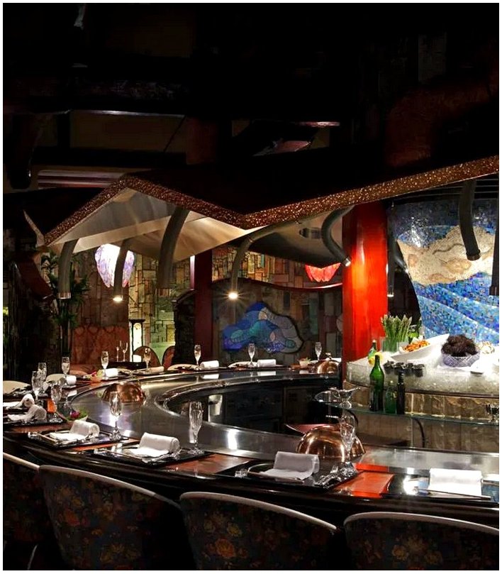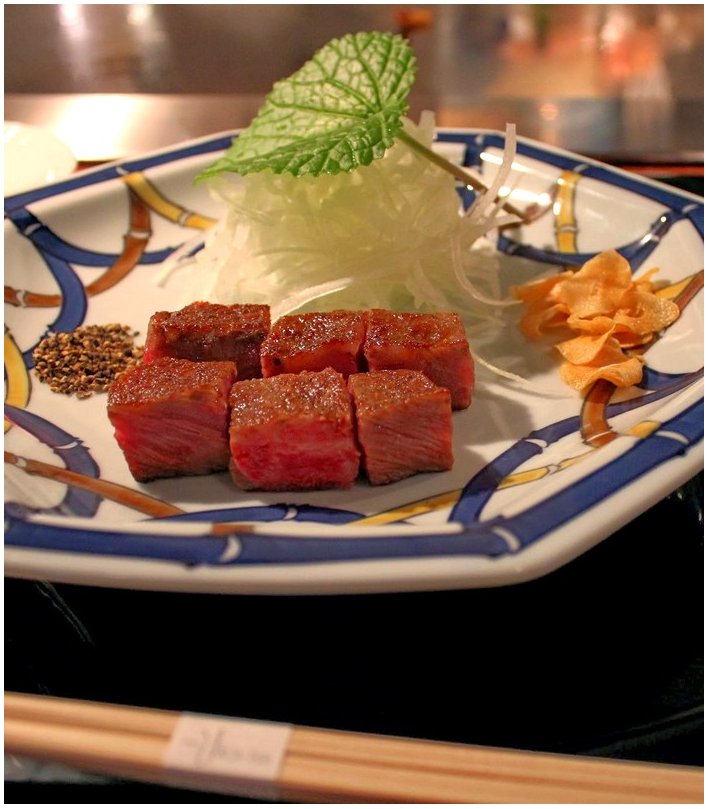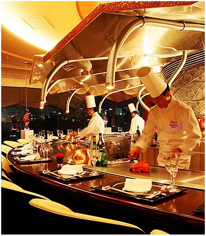 Кухарі готують за авторськими рецептами на очах гостей на теппанє, широкій плоскій сковороді. Тут подають стейки з чудової японської мармурової яловичини, також є сорти м'яса від виробників Miyazaki і Matsusaki. Так само тут можна покуштувати і рибні страви з морепродуктів з усього світу або скуштувати всілякі сезонні частування.