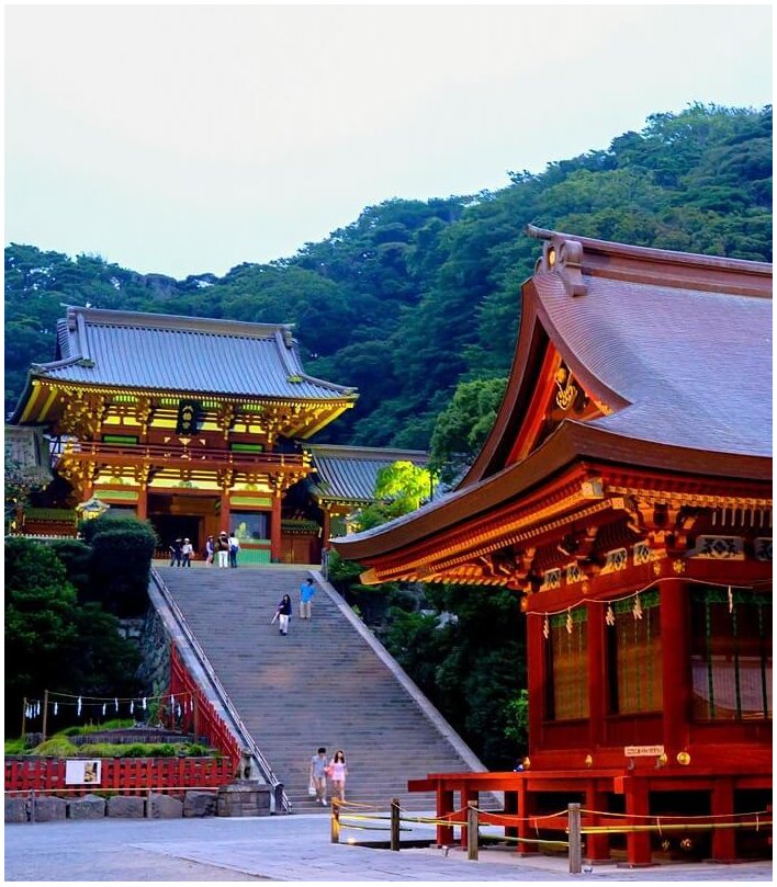 Від морського берега по широкій дорозі Молодого Принца Ви підніметеся до Журавлиного пагорба, де за масивними воротами перед Вами з'явиться прекрасний храм Цуругаока Хатімангу, присвячений Богові війни і воїнів Хатіману.