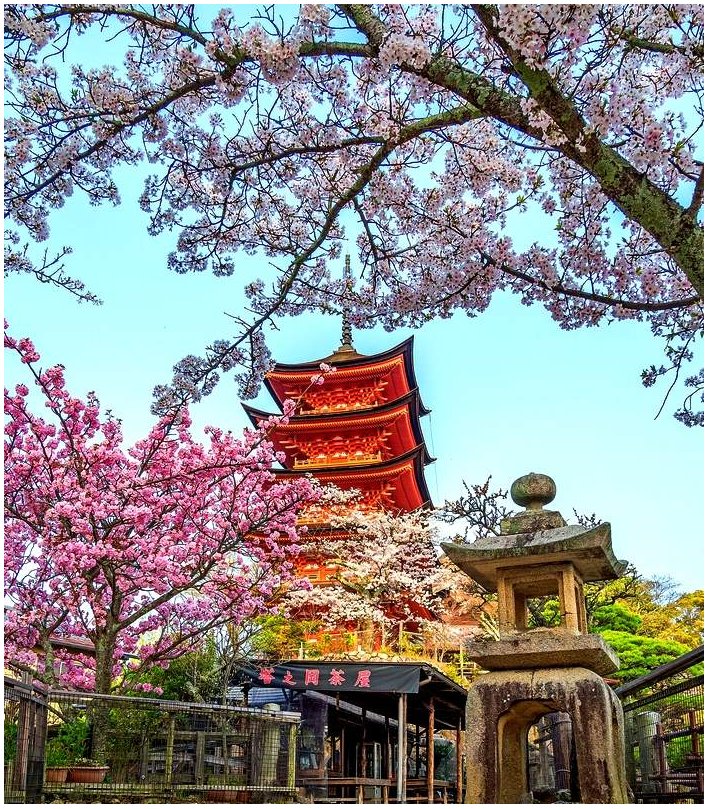 Ви відвідаєте острів Міядзіма, де ніхто не помирав і не народжувався упродовж сотень років. Ви поринете в неповторну атмосферу острова, як тільки зійдете з порома, що доставив Вас туди. Тут мешкають олені (священні тварини за японськими повір'ями), що абсолютно не бояться людей і тому що вільно гуляють по усьому острову.