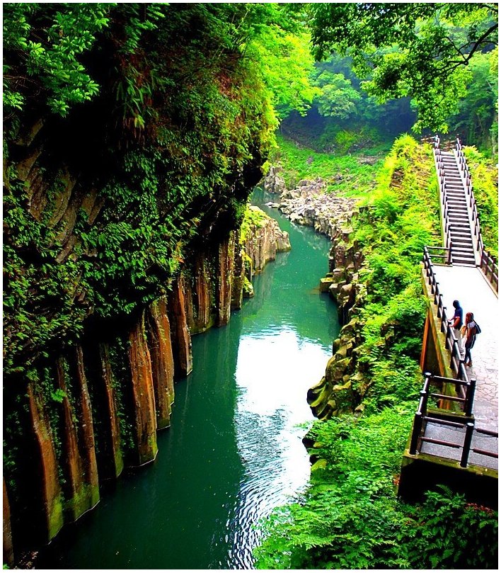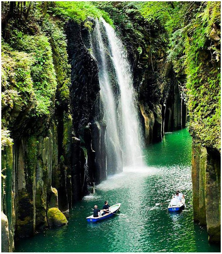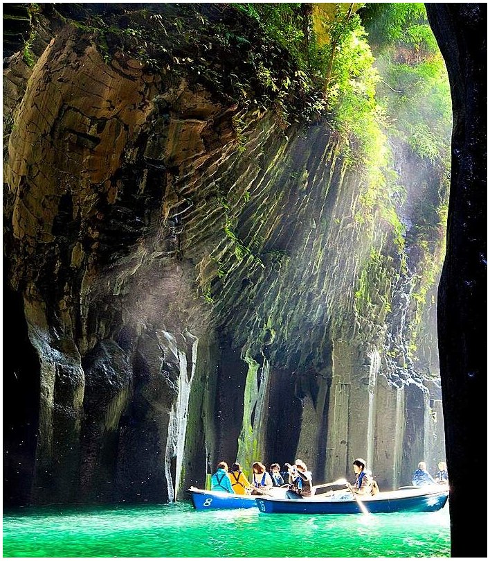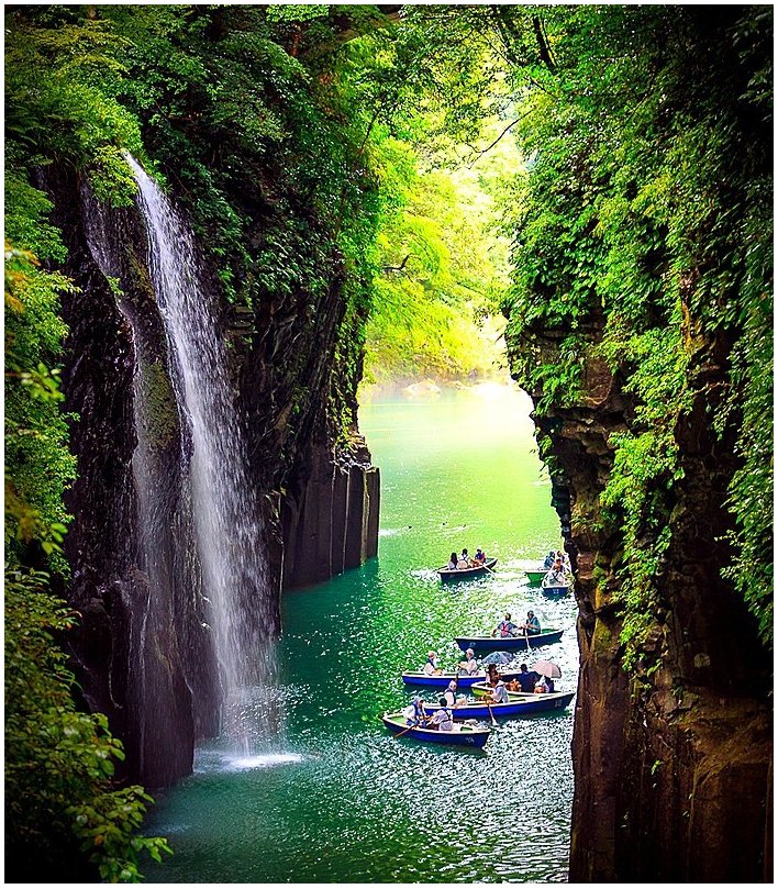 Таємниче і загадкове місце в руслі річки Івато, оточене мальовничими горами, розповість Вам найзнаменитіший міф про богиню Аматерасу. Біля входу в печеру, де зібралися боги, щоб обговорити, яким чином виманити богиню сонця Аматерасу, Ви побачите незліченну кількість кам'яних пірамідок, складених паломниками, як матеріалізоване втілення вознесених до Неба молитов. Не забудьте викласти свою маленьку або велику пірамідку. Подорож до заповідника Мінайнотакі в ущелині Такатіхо зробить цей день зовсім незвичайним після того, як на човні Ви пройдете каньйон з безліччю водоспадів, що ллються каскадом в оточенні щільної зелені і сірих скель.