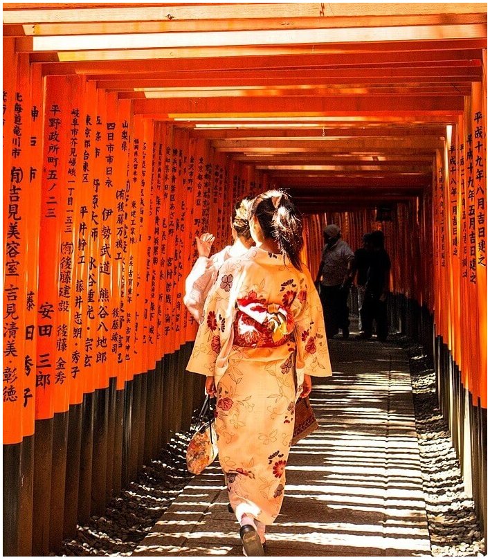 Після чого Ви відвідаєте величний храмовий комплекс Фусімі-Інарі Тайся, який був побудований сімейством Хата у 8-му столітті і присвячений головній синтоїстській богині Інарі, покровительці воїнів і ковалів, богині рису (і сільського господарства в цілому), достатку і успіху. У міру розвитку японської промисловості і зниження значущості сільського господарства, богиня «переорієнтувалася» і стала протегувати промислове виробництво і успіхи в бізнесі. Сьогодні Фусімі-Інарі - один з найпопулярніших храмів Японії і головний храм серед більш 30000 храмів Інарі, розкиданих по всій країні.