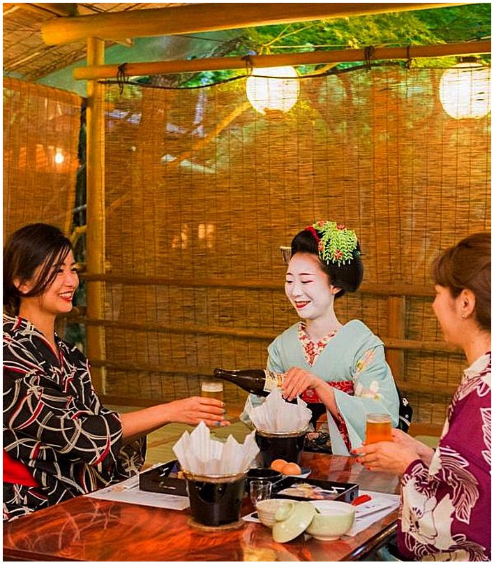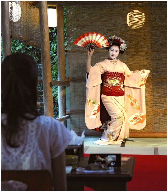 Вечеря тут - це ще й рідкісна можливість подивитися на танці майко (учениць гейш), а також задати їм питання і сфотографуватися на пам'ять.