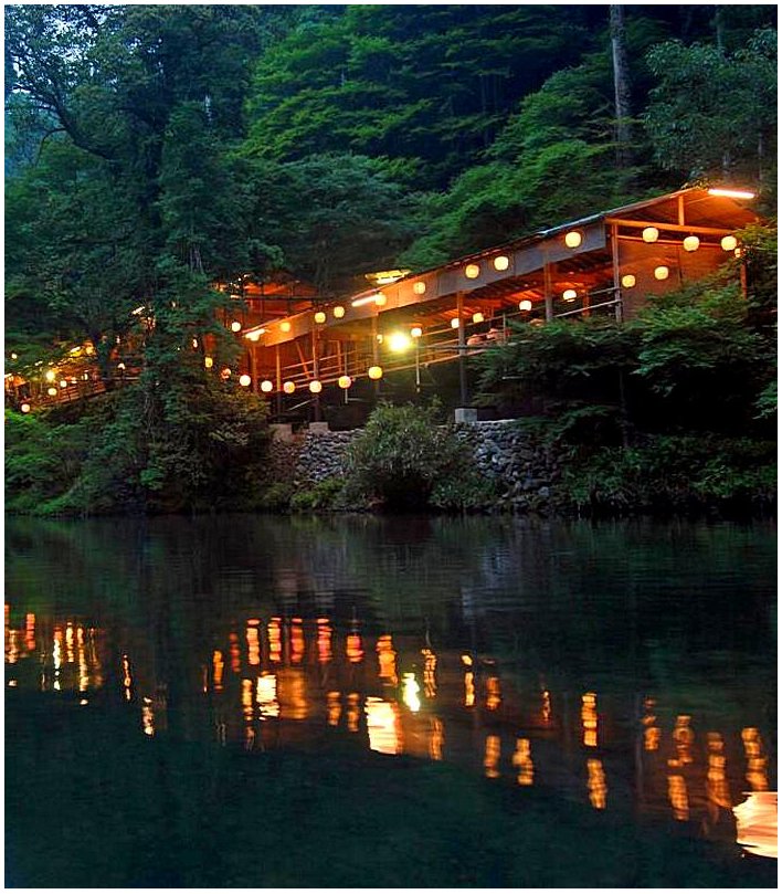 Тут особливо приємно відпочити жарким японським літом, відчути освіжаючу прохолоду пробігаючої внизу річки, а також скуштувати традиційні страви, приготовані з місцевих продуктів - прісноводної риби та різних видів овочів.