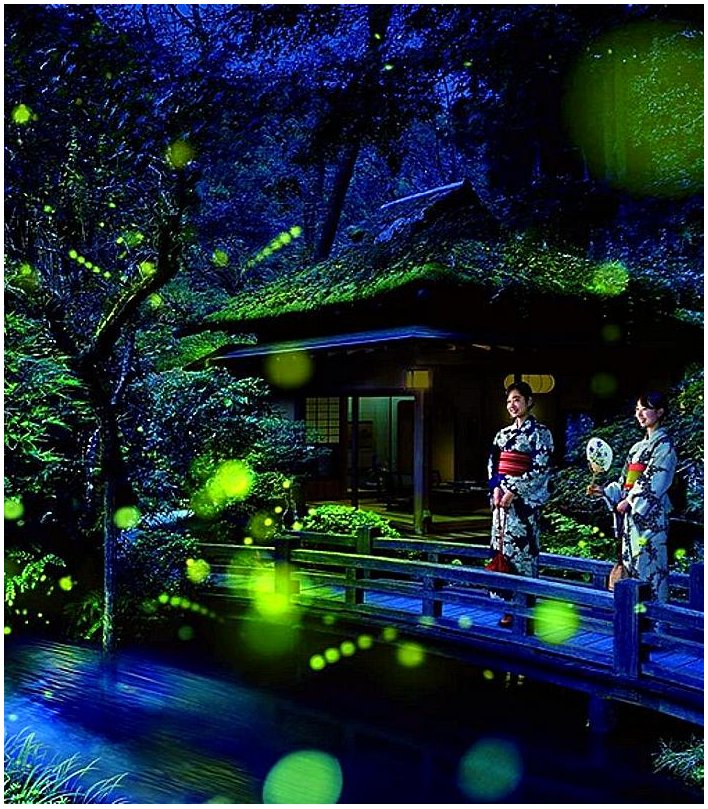 Службовці збираються біля річки - там, де найкраще спостерігати за полюванням відвідувачам, і ловлять їх сачками. В повітрі починають синхронно спалахувати вогники живих лампочок. Здається, що невидимий диригент керує цією чарівною світломузикою ...