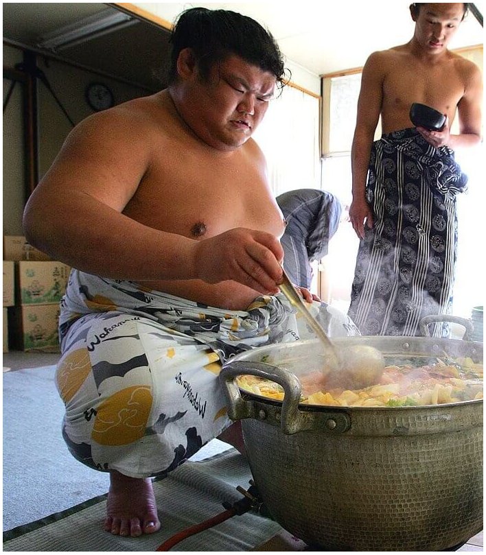 Під час трапези Ви спробуєте юшку chanko-nabe, рецепт якої був спеціально розроблений для борців сумо і містить дві добових норми калорій.