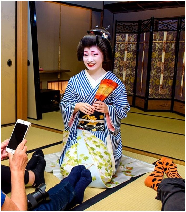 Гейша - в перекладі означає «людина мистецтва». Основна робота гейш - проведення банкетів в чайних будинках або ресторанах японського типу (підлога-татамі). Гейші розважають своїх гостей танцем, співом, проведенням чайної церемонії або бесідою на будь-яку тему.